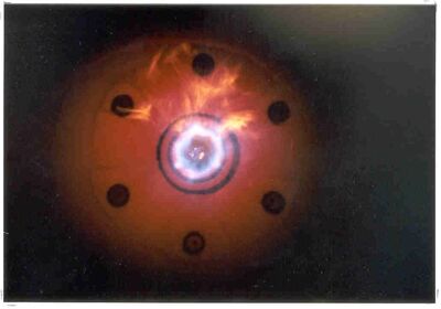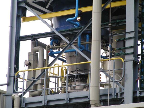 Direkter Blick auf eine der Körting-Heißgasquenche unmittelbar vorgeschalteten Prozessgasverbrennung