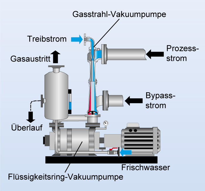 - Vorschaltstufe für Wasserringpumpen zur weiteren Saugdruckabsenkung