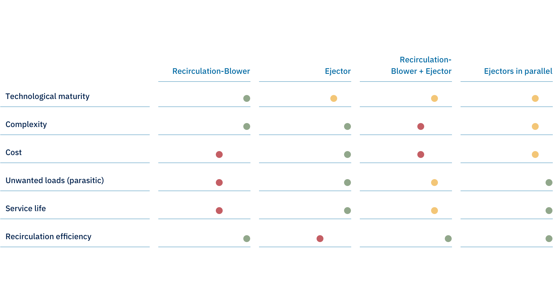 - Ejector usage reduces total hydrogen volume to small amounts compared to the conventional hydrogenation concept.